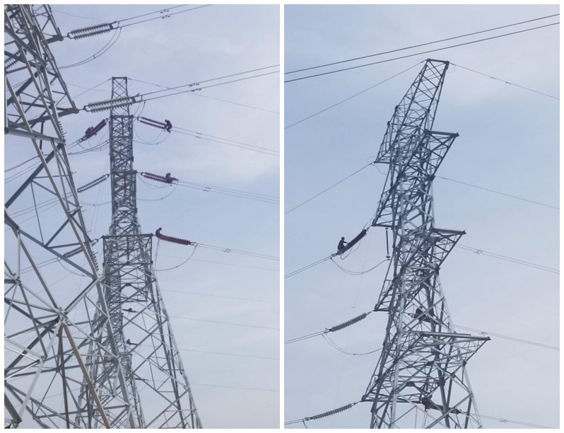 圖為三源建設工程有限公司施工技術(shù)人員在菏澤新建220kV輸電線(xiàn)路防污閃噴涂施工工地現場(chǎng)施工實(shí)況記錄